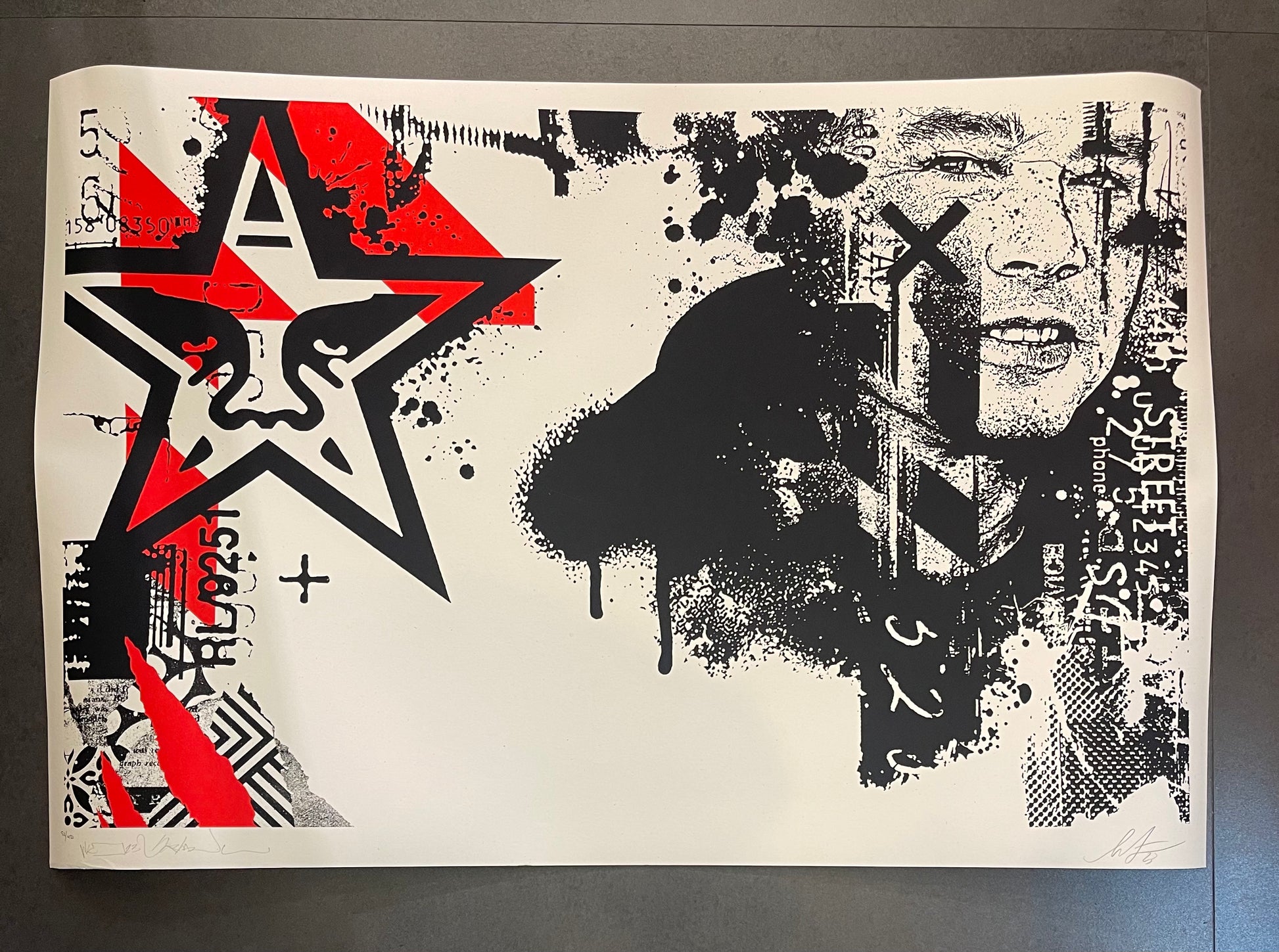 Serigrafia su carta Specketlone true White. Eseguita in collaborazione con l'artista di murales di New York WK Interact. Edizione limitata di 450 es. Firmata e datata a mano da Fairey e firmata anche da WK . Anno 2023. Sold Out.